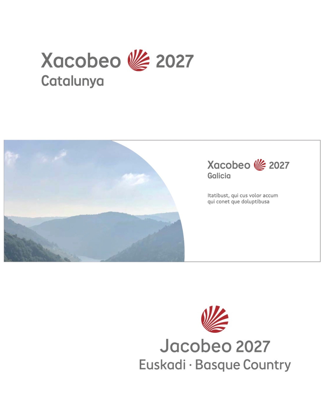 Así, mantense o logotipo coa redeseñada cuncha de vieira e a tipografía "personalizada" que Permui creou a partir de investigacións sobre tipografías galegas de principios do século XX. Tamén as cores vermella e gris, se ben o manual de identidade incorpora a consolidación "dunha versión do logotipo en branco sobre o azul corporativo da Xunta de Galicia", xa utilizada no anterior Xacobeo.