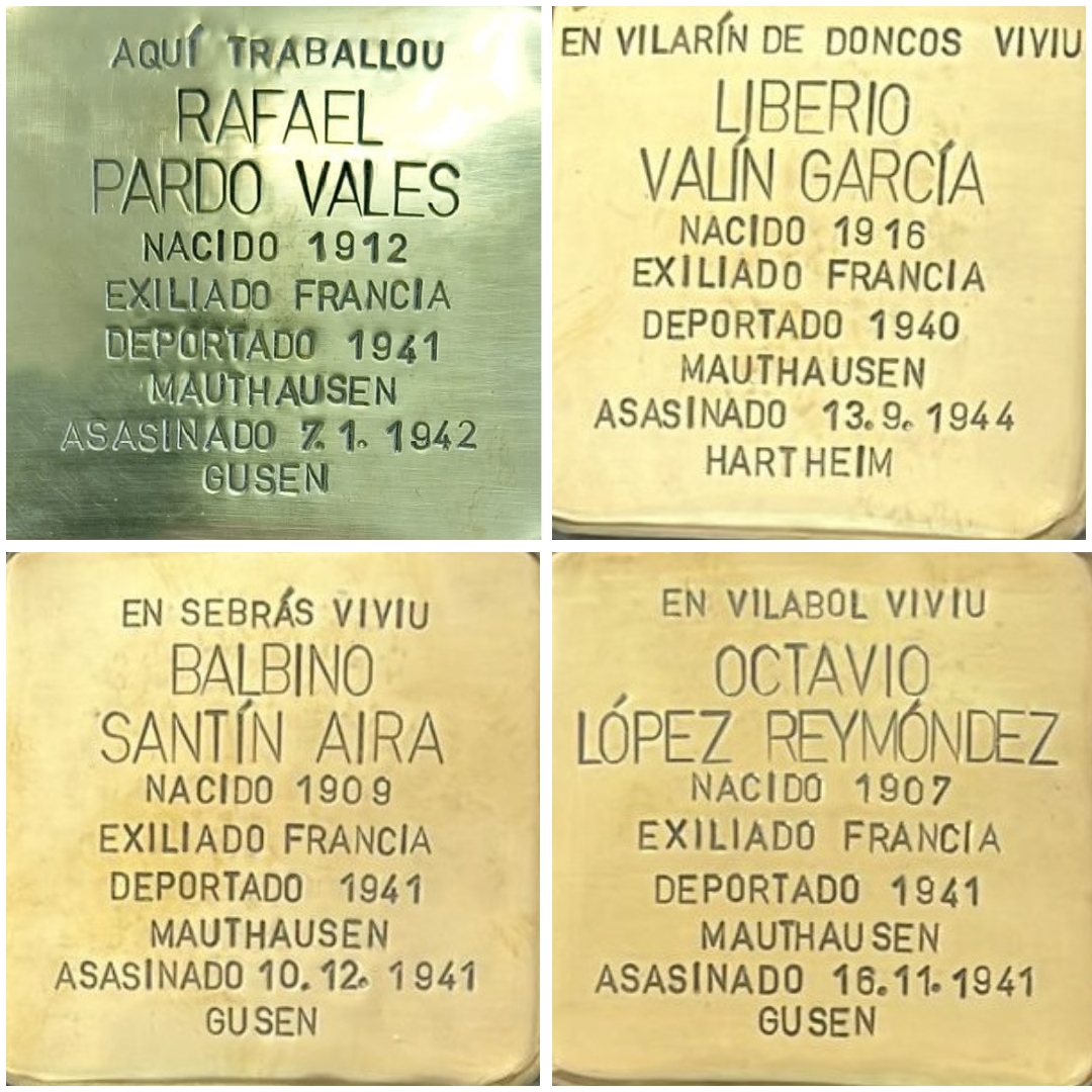 Hai catro anos que as primeiras chegaron a Galicia. Ribadeo ou A Coruña acollen xa estes símbolos que agora, en datas próximas ao Día en Memoria das Vítimas do Holocausto (27 de xaneiro), van ser instalados tamén en catro concellos lucenses para lembrar sete veciños deportados aos campos nazis dende o exilio en Francia, todos agás un falecidos neles. A Asociación para a Recuperación da Memoria Histórica (ARMH), impulsora das homenaxes, explica que "contactou cos seus familiares" e "moitos deles non sabían do destino dos seus".