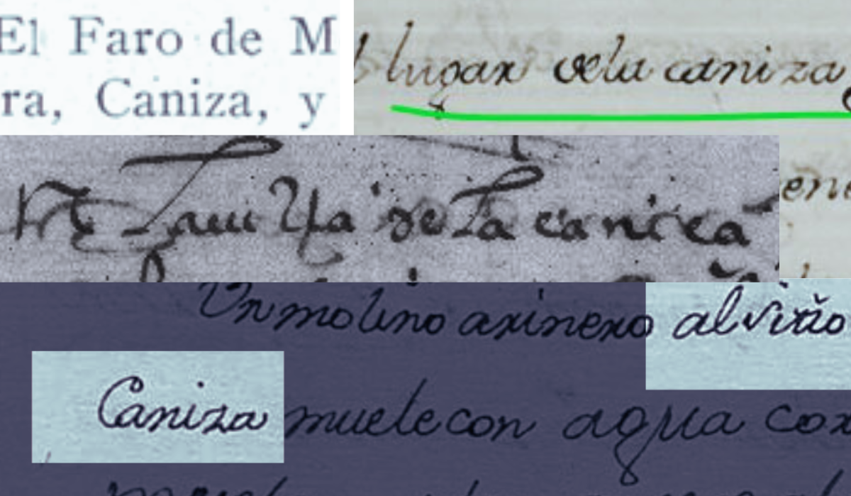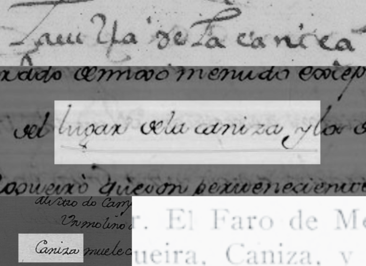 Ademais, os expertos explicaron que nas referencias en textos escritos en castelán, o topónimo aparece frecuentemente castelanizado como La Cañiza, e con esta forma adoita rexistrarse na documentación posterior á creación da parroquia. Con todo, en diversas fontes coma o Catastro de Ensenada (1753) e o seu expediente de comprobacións (1764), á beira da forma deturpada tamén se rexistra en ocasións a forma lexítima. Tamén anotou a forma propia sen castelanizar o padre Martín Sarmiento na súa Viaje a Galicia de 1755: “Y la altissima cordillera de Franqueira, Caniza, y Paradante o Pedra de Anta que es el remate azia Mourentan”.