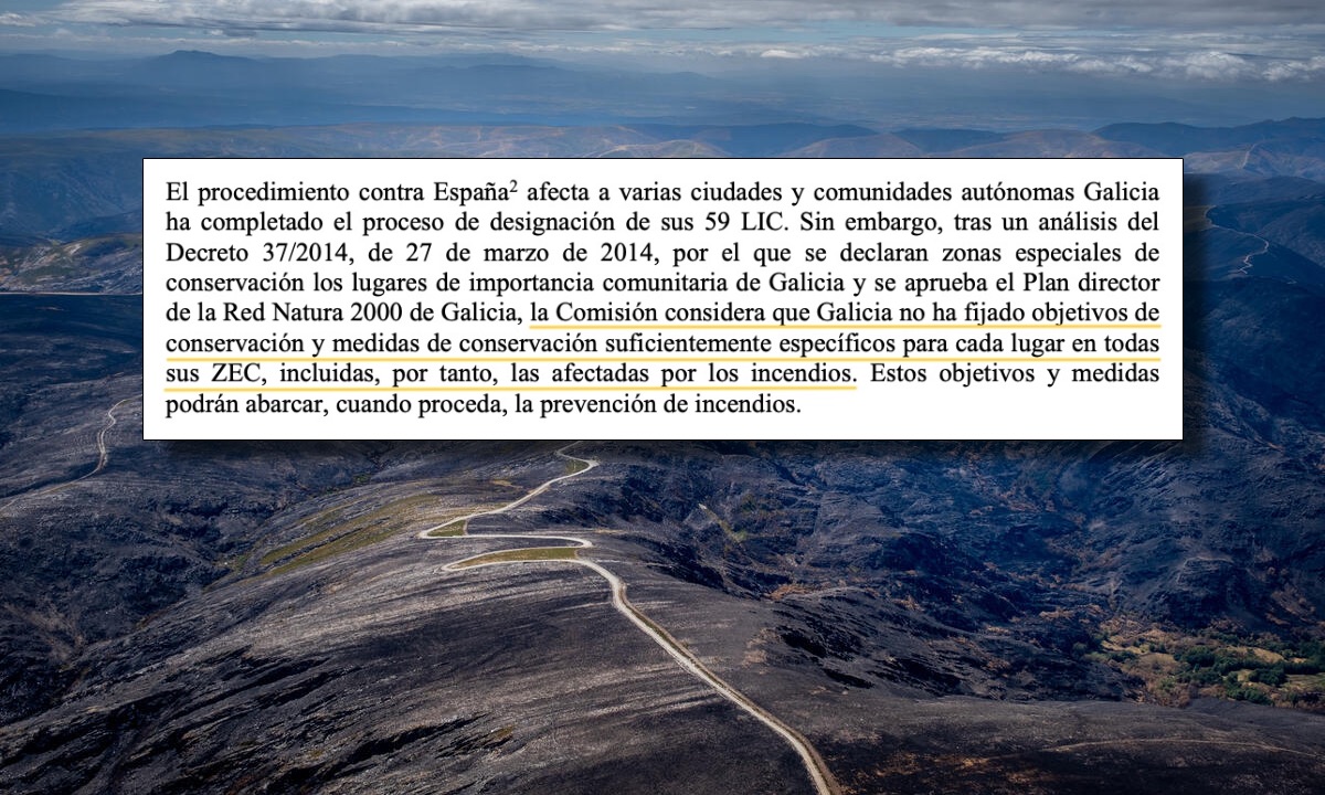 A Comisión Europea admite que "Galicia non fixou obxectivos e medidas de conservacións suficientemente específicos" para as zonas protexidas, "incluídas as afectadas polos incendios", pero segue demorando a sanción
