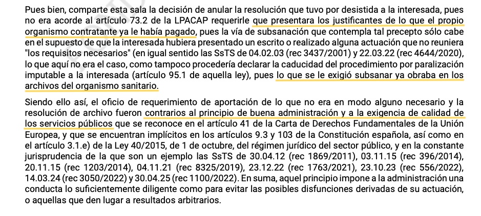 O TSXG considera que "o oficio de requirimento de achega do que non era en modo algún necesario e a resolución de arquivo foron contrarios ao principio de boa administración e á esixencia de calidade dos servizos públicos". Un principio que, salienta a sentenza, "impón á administración unha conduta o suficientemente dilixente como para evitar as posibles disfuncións derivadas da súa actuación, ou aquelas que dean lugar a resultados arbitrarios". Así que a sentenza remata confirmando o dereito da empresa a cobrar os 47.000 euros que o Sergas se negou a pagarlle.