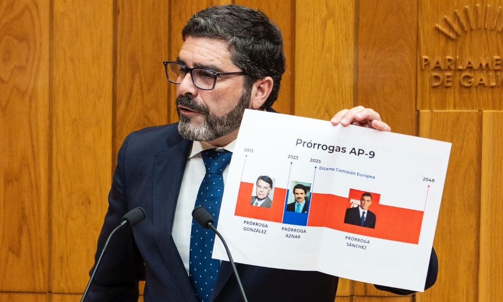Mentres todo isto sucede, en Galicia multiplícanse as voces políticas e económicas que piden "aproveitar" a ocasión para rescatar a concesión e, en calquera caso, converter a AP-9 nunha autovía. Isto é, nun vial de alta capacidade no que as persoas usuarias non deben pagar directamente por circular. Con diversos tons ou propostas pídeno o BNG e o PSdeG, asociacións de transportistas, concellos... E tamén a Xunta e o PP, no seu caso cun matiz relevante: borrar da escena a un José María Aznar que esta mesma semana retornaba aos titulares para marcarlle o camiño ao PP de Alberto Núñez Feijóo na súa posición a respecto do xenocidio en Gaza.