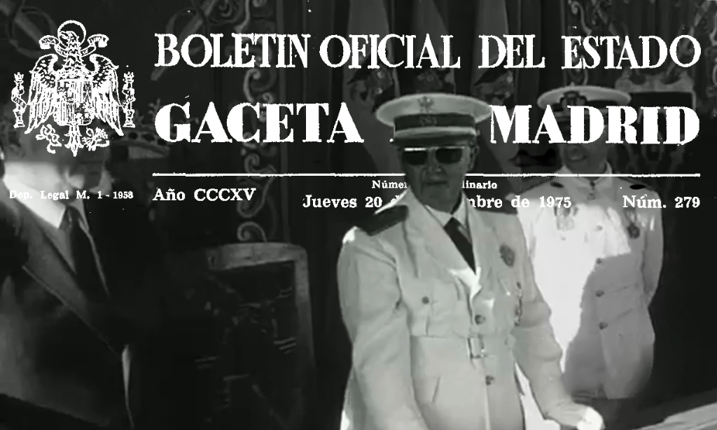 Franco morreu, o seu BOE segue vixente. Tal día coma hoxe de hai 50 anos morría o ditador. Francisco Franco falecía case corenta anos despois do golpe de Estado do que foi protagonista e tras o cal as súas manobras lle permitiron encabezar o réxime construído a partir de tres anos de guerra e catro décadas de represión de diversas modalidades e intensidades.