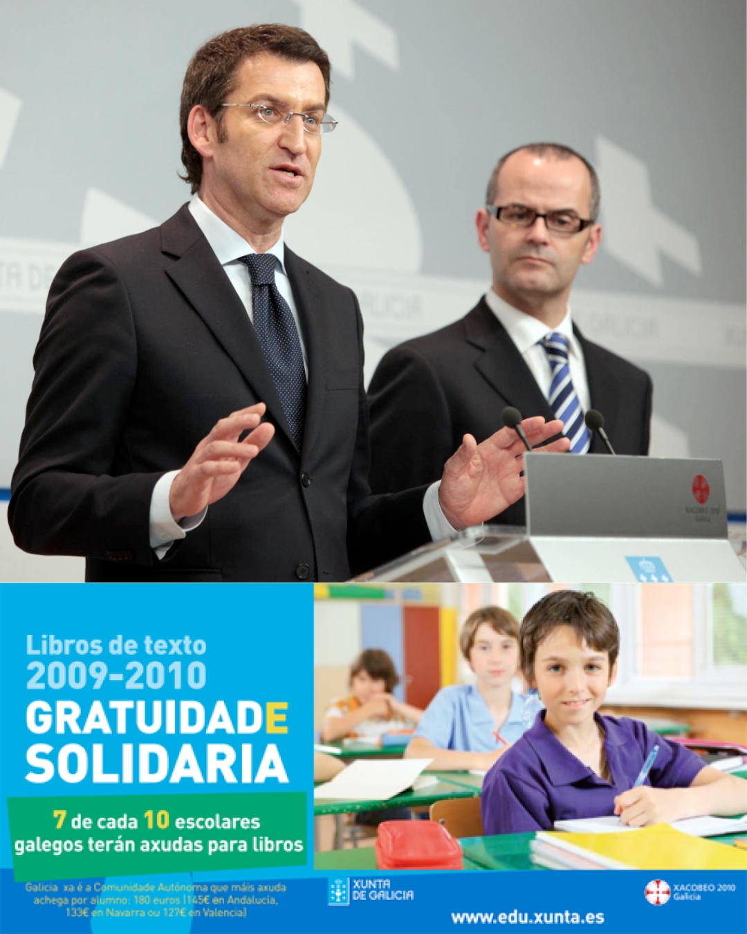 Como é sabido, na etapa de socialistas e nacionalistas na Xunta a Consellería de Educación implantou un sistema de libros de texto públicos para ensino público e concertado que, con diversos axustes, foi estendendo por todos os niveis educativos. En 2009 o Goberno de Alberto Núñez Feijóo cancelouno e substituíuno por un sistema de axudas parciais que alcumou como "gratuidade solidaria". En 2015 remudouno por un modelo mixto de préstamo dalgúns manuais -o "fondo solidario"- e de axudas económicas que chega ata a actualidade.