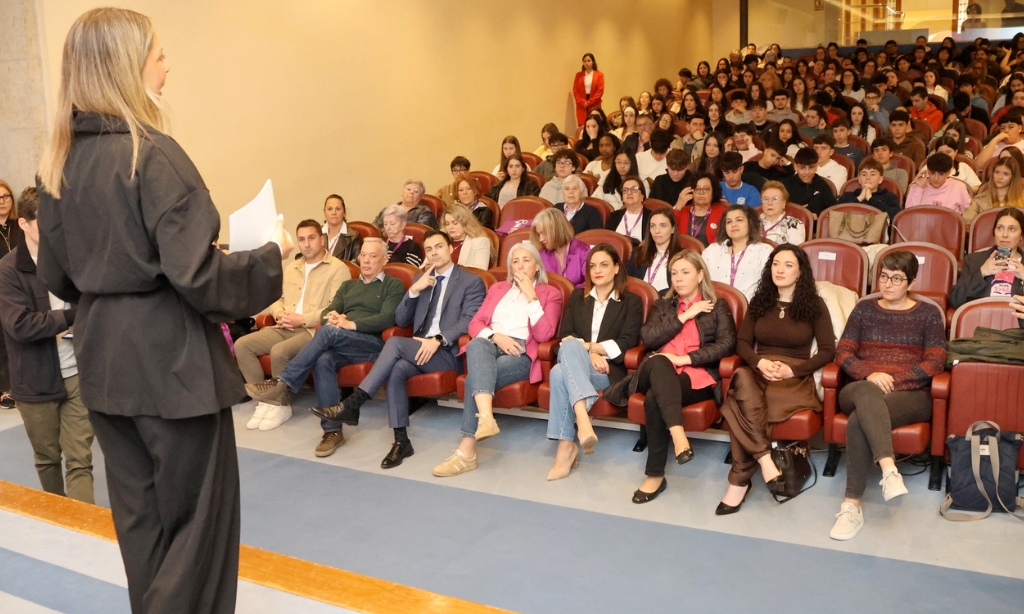 Cargos institucionais compartiron bancadas no Pazo de San Marcos con alumnado adolescente de tres centros educativos (os institutos Ánxel Fole e Politécnico e mais o colexio Galén) nunha xornada que, conducida pola actriz e presentadora Beatriz Serén, achegou a rapazada a referentes como Eulalia Pérez Sedeño, referente da filosofía da ciencia e os estudos de xénero.