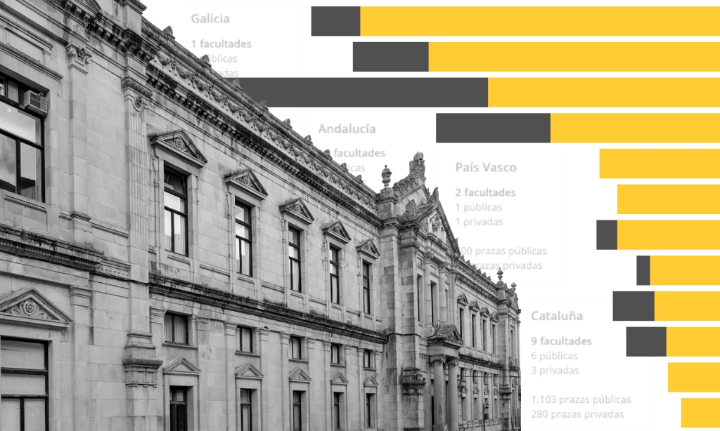 Só en tres comunidades o número de facultades privadas supera o das públicas: Murcia, Comunitat Valenciana e Madrid. A autonomía presidida por Isabel Díaz Ayuso é, ademais, a única onde hai máis prazas privadas que públicas en Medicina: o dobre.