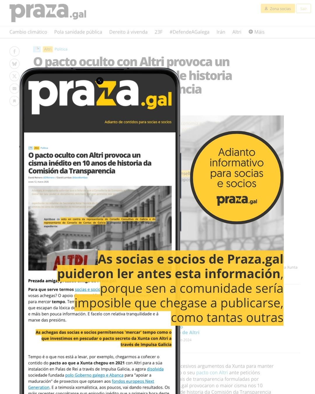 Malia estes obstáculos da Xunta e da Comisión da Transparencia, Praza.gal segue pescudando para ter acceso ao pacto con Altri. Tras a argumentación da Xunta de que non ten o acordo, o presidente Rueda admitiu que el si o coñece e a través de "representantes da Xunta". Por iso Praza.gal formulou unha nova petición de transparencia para ter acceso á información que estea en poder da Presidencia da Xunta. Unha petición da que de momento Presidencia se desentendeu remitíndoa á Consellería de Economía e Industria.