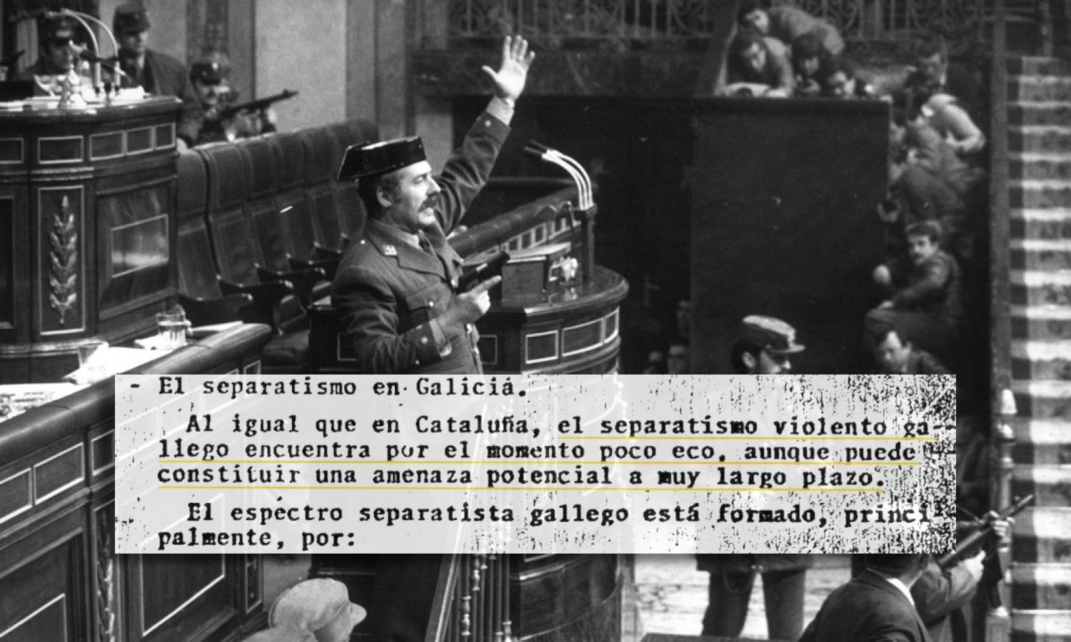 Entre a documentación desclasificada arredor do Golpe de Estado do 23F, ademais de informes policiais sobre as reaccións políticas, sindicais e estudantís en Galicia, hai un informe do Ministerio de Defensa "sobre a ameaza interior", con data do 10 de febreiro, dúas semanas antes do golpe, no que se teñen en conta "as hipóteses de accións involutivas" con respaldo militar.