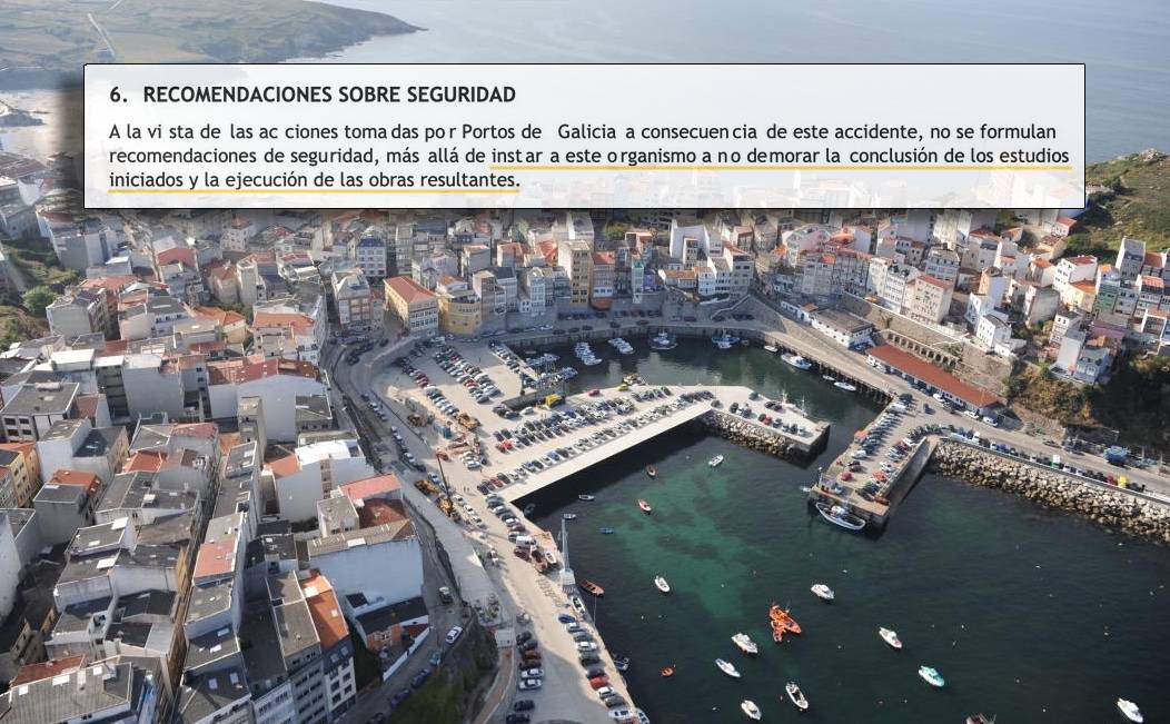 Tras o afundimento cun morto ocorrido en decembro de 2018, a investigación oficial urxiu a "non demorar" a mellora da seguridade do peirao, pero Portos de Galicia segue sen saber que facer e vai encargar outro estudo por outros dez meses