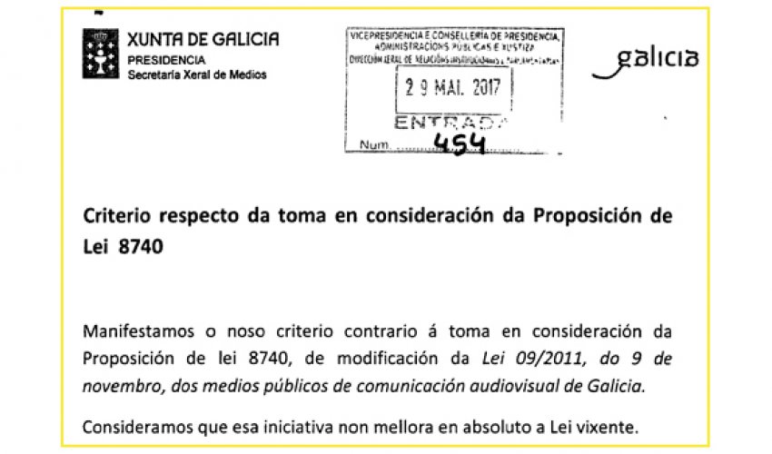 O Goberno emite un ditame contrario á toma en consideración dunha proposición do PSdeG para fixar prazos de cumprimento á lei dos medios públicos de comunicación. O Executivo non promulgaba un informe negativo coma este dende novembro de 1995.